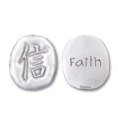 This beautiful pocket token is the perfect gift for that very special friend, family member or partner. Solid pewter tokens are embossed with a Chinese symbol on one side and the word ‘Faith’ on the other. These tokens are easily carried in your pocket, wallet or purse and are a constant reminder that someone is thinking of you and wishing you well. These tokens can also have a small hole drilled at the top to carry on a keychain. A perfect gift for holidays, birthdays or a "thinking of you" gift! Order many for the special people in your life. PRICE INCLUDES SHIPPING |
