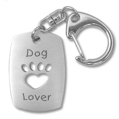 This lovely key ring shows a paw print with the words "Dog Lover" on both sides.