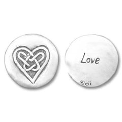 This beautiful pocket token is the perfect gift for that very special friend, family member or partner. Solid pewter tokens are embossed with a Celtic heart symbol on one side and the word ‘Love' on the other. These tokens are easily carried in your pocket, wallet or purse and are a constant reminder that someone is thinking of you and wishing you well. These tokens can also have a small hole drilled at the top to carry on a keychain. A perfect gift for holidays, birthdays, Valentine's Day, Mother's Day or a "thinking of you" gift! Order many for the special people in your life. PRICE INCLUDES SHIPPING |